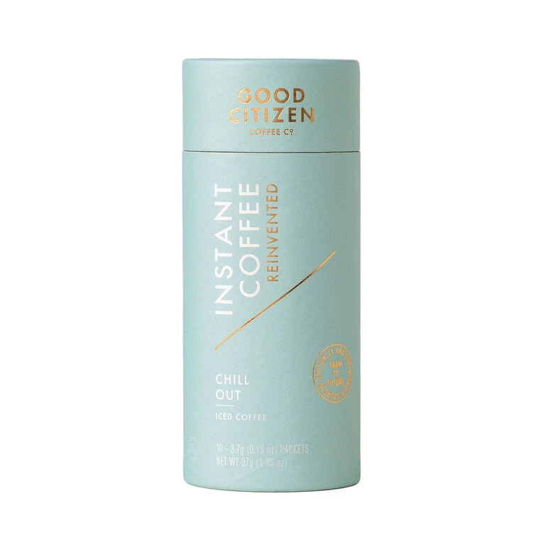 - Good Citizen Chill Out instant coffee canister includes 10 individual packets of iced coffee roast.