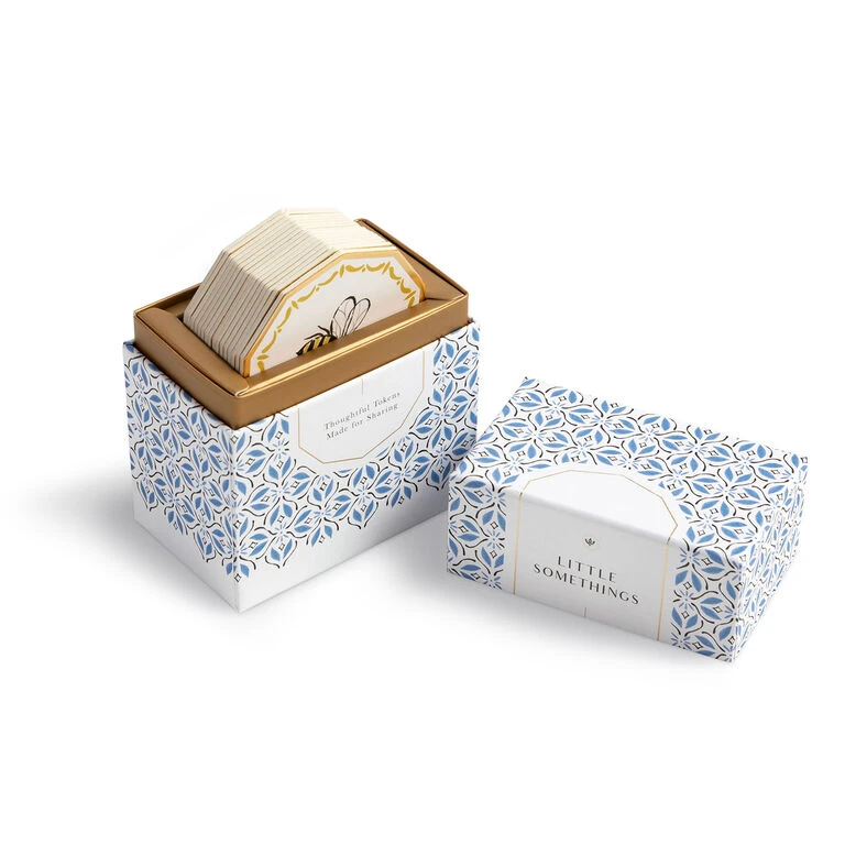 - Little Somethings Thoughtful Tokens Made for Sharing by Compendium includes 16 unique paper tokens featuring an icon on one side and message on the other with gold foil accents in a box.