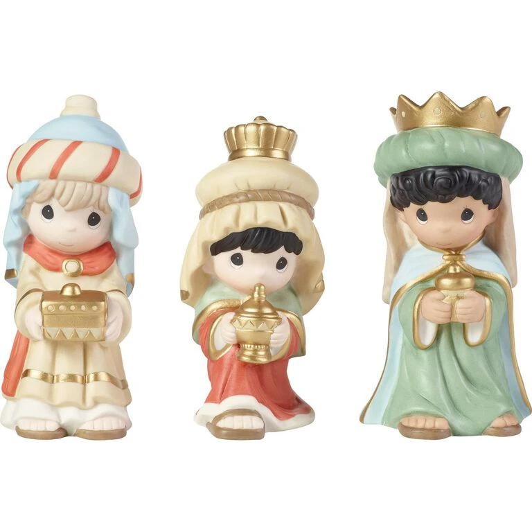 - Precious Moments set of 3 porcelain figurines with handpainted details features three wise men.